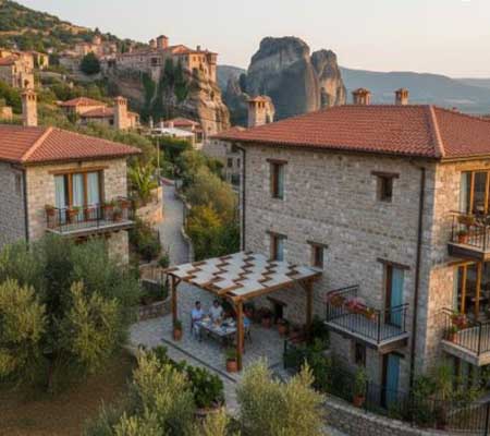 Book a guesthouse close to Greek monasteries and enjoy homely comfort, local cuisine, and direct connection to village traditions and sacred paths.